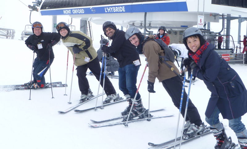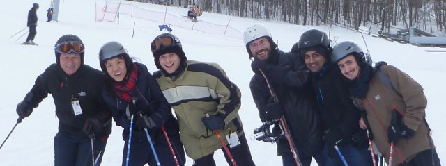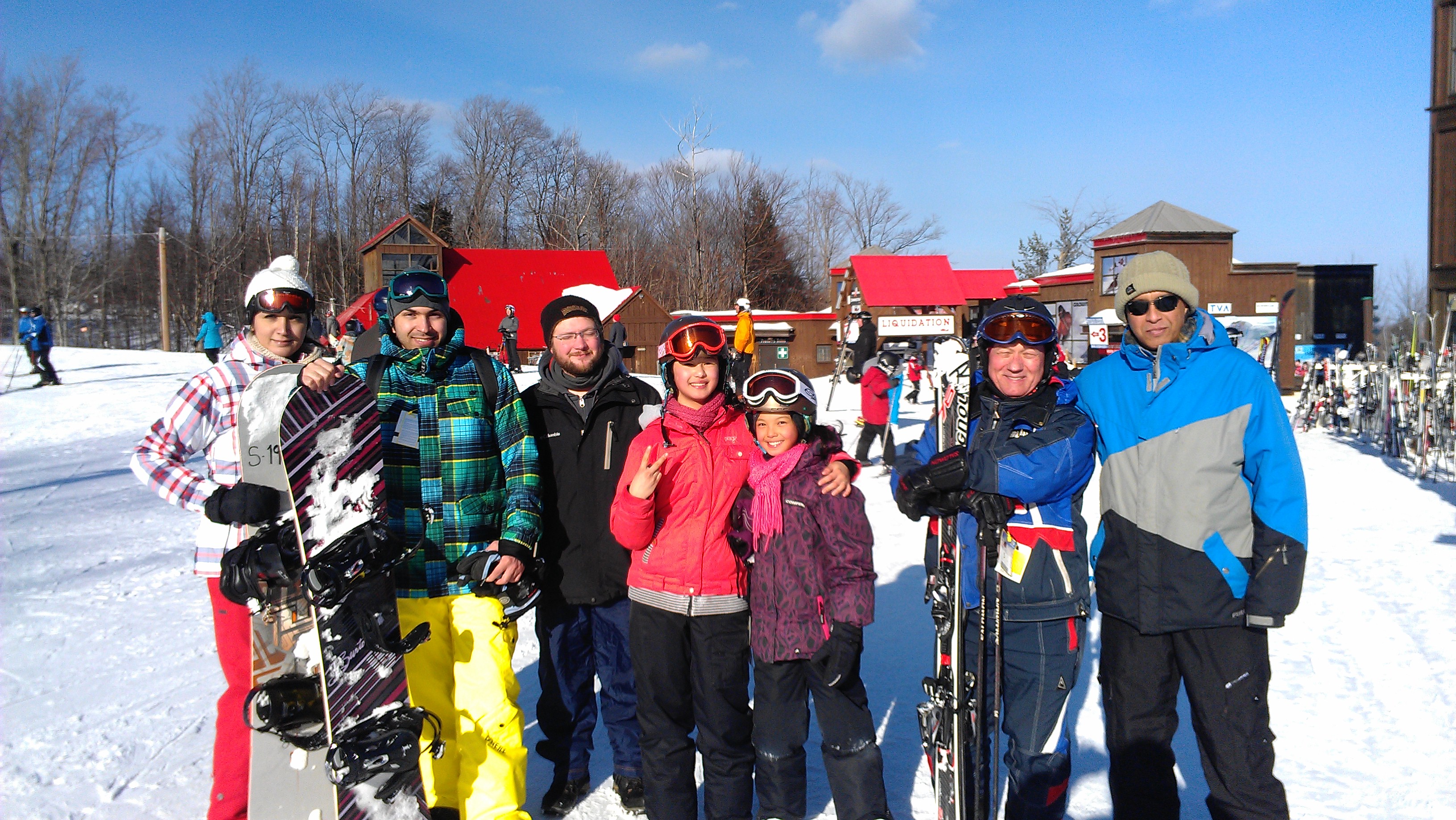 QS Group Ski Day at Orford, March 5, 2014; from the left: Elnaz Nazemi, Mohsen Rohani, Romain Béal, Nora and Ptisane Moumanis, Jan Dubowski, Khalid Moumanis