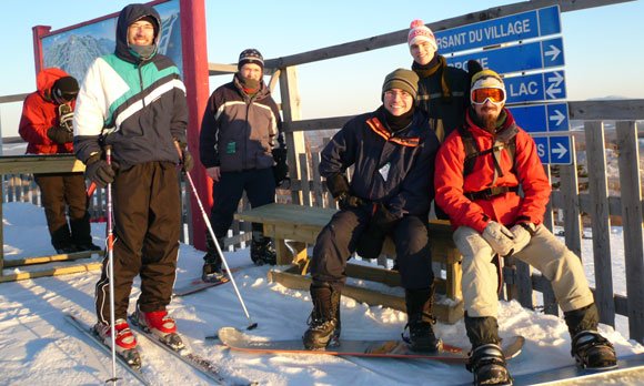Taken on March 17th, 2008, on top of mount Bromont, a ski resort in Quebec. The group depicted is partial, as not everybody dared to brave freezing weather.